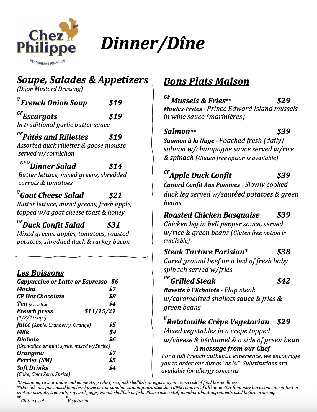 Start with a French Onion soup, then treat yourself with a Parisian steak tartare, some Moules Frites or even our grilled steak with caramelized shallots sauce!