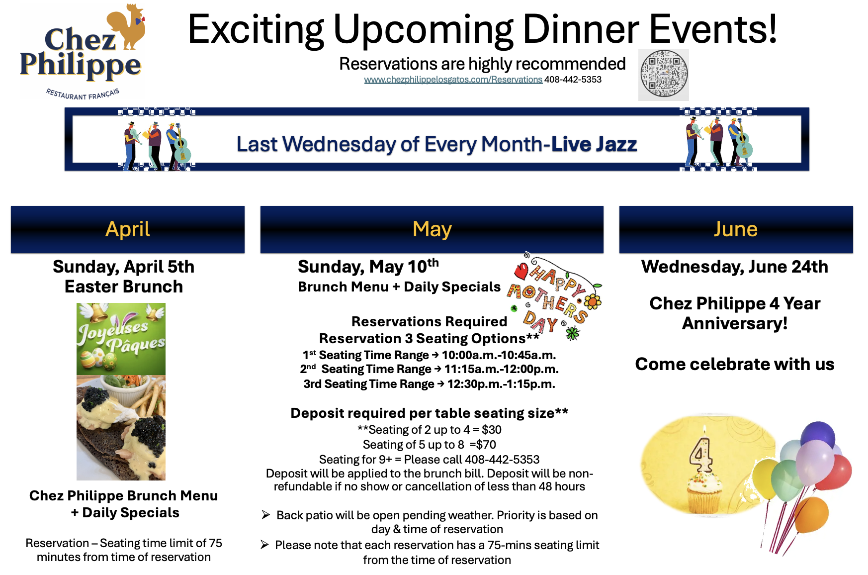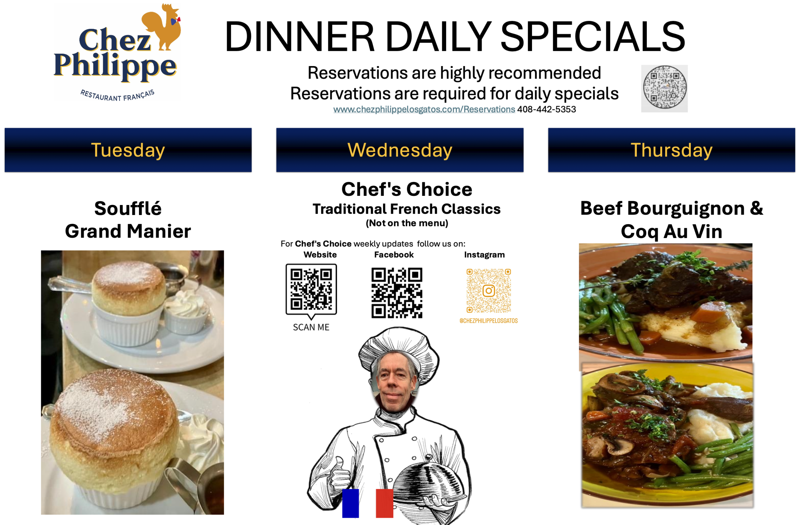 Chef Philippe, owner and executive chef of Chez Philippe, is a classically trained chef with over 35 years of culinary experience. He graduated from the prestigious Ferrandi Paris. He’s a well experienced chef who has opened many restaurants and looking to make Los Gatos his home.